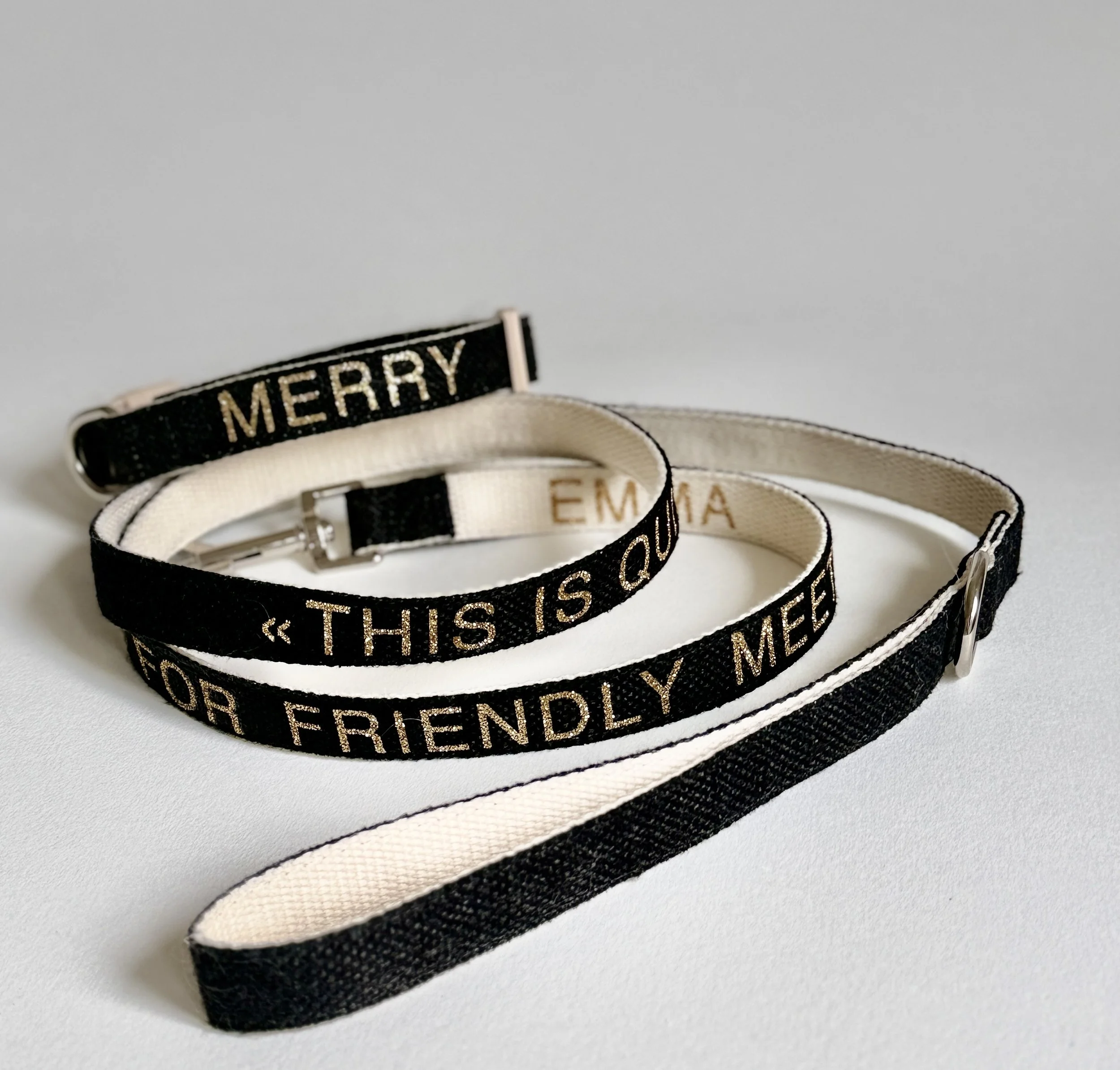 is written on every collar, that comes in the same color of your leash. For the perfect match, inside and outside.